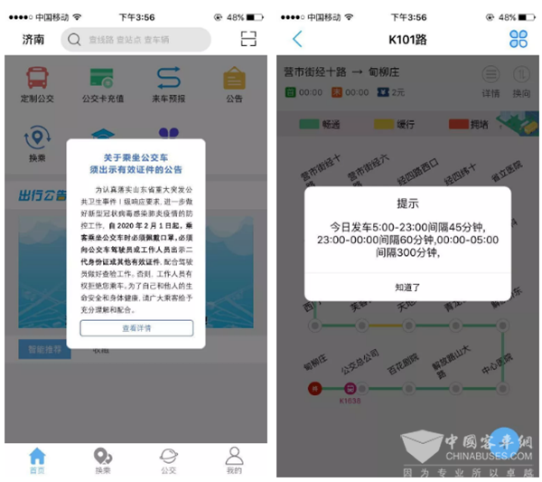 疫情防控期间,为提高广大市民、复工企业员工公交出行效率,济南公交推出非常时期定制预约服务的“非常标准”,原有定制公交线路开线标准由原来20人降为5人,即乘客满5人预约定制即可恢复该线路运行。济南公交将根据购票人数,合理调配相应车型。定制公交20人开线标准将根据疫情防控动态适时恢复。