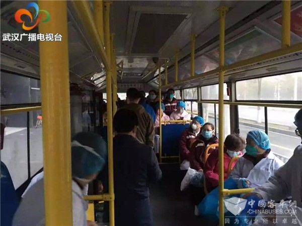 2020年2月9日至10日,武汉迎来了新一波、5000余名支援防疫一线的医护人员,经过短暂的休整以后,所有医护人员便投入到紧张的防疫救援工作,为确保外地医护人员、方舱志愿者的交通出行,武汉公交二公司党员防疫突击队的队员们24小时连轴转,用实际行动书写“武汉担当”。