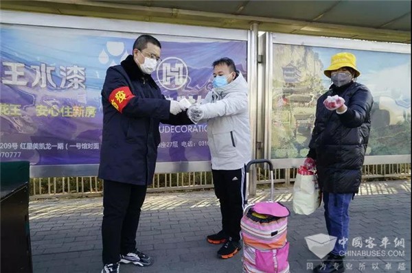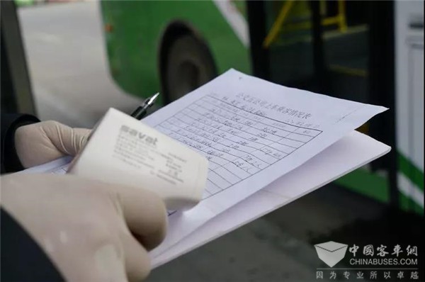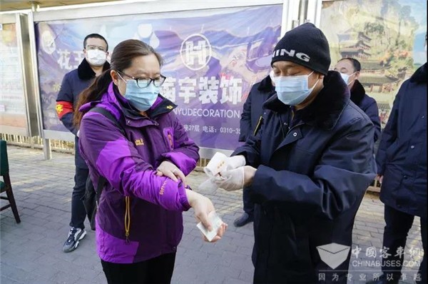 每辆公交车上均配备一名“防疫员”跟车操作,按照疫情要求,公司规定防疫员每站下车,站在规定位置对乘客进行测温、问询,并按照要求严格登记,符合条件者方可乘车,确保乘客乘车安全。
