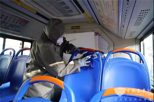 公交车内一趟一消毒一登记;车厢坐垫全部摘除,保证消毒到位。勤开窗、勤通风,将各项工作做精做细,确保消毒彻底、安全有效。