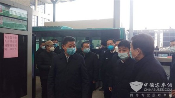 2020年2月10日上午,济南市副市长、市局局长吴德生等领导到济南东站公交枢纽检查督导疫情防控工作。集团公司副总经理姜良、李峰等领导陪同检查。