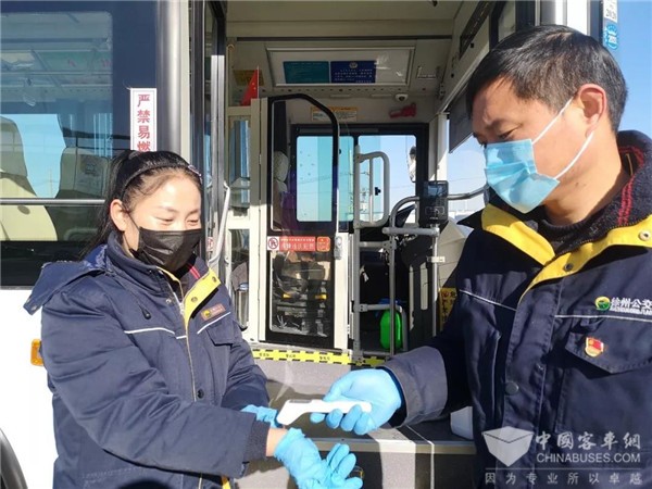 齐心协力共战“疫”。“一是认真清扫车厢,特别是卫生死角,不给病毒留有任何生存的机会;二是保持车厢空气流通,不让病毒聚集。我再给你补充一点,三是认真、细致、不遗漏、不敷衍,让乘客放心,也不给社会添乱。”驾驶员李伟、戚志勇一边清洁车辆卫生一边分享着防疫心得。“有公交师傅在,我特放心。每天早上我只需要提前两三分钟到御景湾公交站台,不一会卢师傅的车便准点到达了,特别方便。卢传安师傅是一名党员,他要求高,都是一天四次消毒,提醒我们全程戴口罩,疫情期间上班确实担心,但是卢师傅的周到服务,又让我特别放心,也很感动。”家住滨湖御景湾的郭女士激动地说。 同舟共济,坚守“疫”线,定制公交专线全体驾驶员用自己的方式守护着复工人员的出行安全,他们俨然成了定制公交专线防运并重的“守门员”。