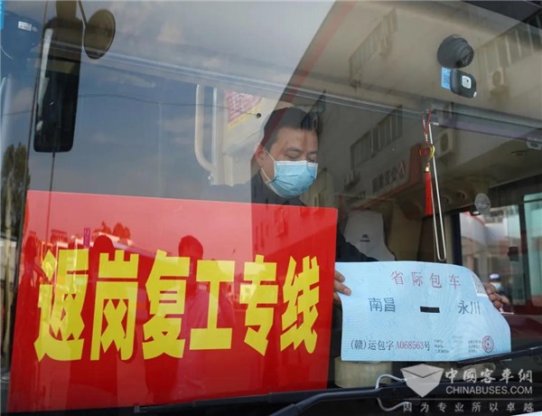 据了解,为了帮助南昌市各大企业有序复工,南昌公交于2月15日推出了“公交防疫保障专线”服务,对复工企业提供点对点的接送,全力满足复工企业职工通勤需求。该服务一经推出,就收到了来自多个单位的预约,其中中铁四局南昌地铁项目部提出希望南昌公交开通专车前往重庆接回20名复工返岗工人。经过多方筹措和沟通,在南昌市客运主管部门的大力支持下,南昌公交正式开通了南昌市首条跨省复工专线。