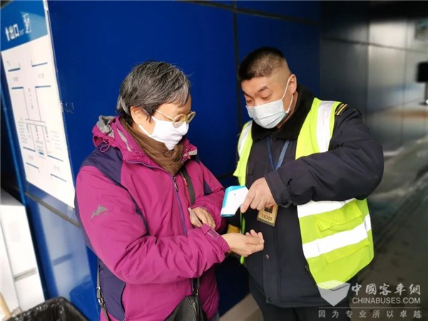 除需佩戴口罩之外,乘客体温测量是乘车安全的重要防线。防疫期间,济南公交所有运营车辆内配备了测温仪,并安排跟车人员严格检测乘客体温,并进行有效证件核验。而加强乘车人员的追踪管控,也是防止疫情传播的重要途径。为实现乘客乘车信息的可追溯可查询,济南公交上线“济南公交乘客信息登记”系统,推出乘车扫码登记新举措,相关部门可通过系统信息及时追溯到同乘乘客,避免风险扩散。