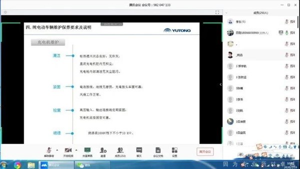 保修公司在疫情防控期间停工不停学,将职工维修业务技能培训放在首位,利用“互联网+培训”的模式,通过腾讯会议、钉钉等平台,由保修公司技术员担任讲师进行技能提升为主的网络在线授课,培训内容涵盖宇通纯电车维修技术、比亚迪维护作业规范、克诺尔盘式制动器等新知识。
