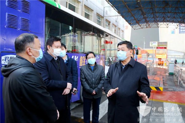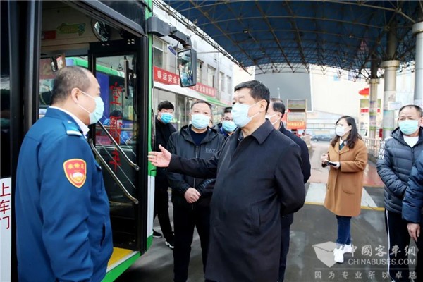 2020年3月1日上午,河北省交通运输厅党组书记、厅长单宝风一行来到石家庄公交谈固枢纽站结合复产复工督导检查公交运力恢复和疫情防控工作,石家庄市交通运输局党组书记、局长米志奇、党组副书记、副局长闫炳华、石家庄公交总公司总经理刘东辉陪同检查。