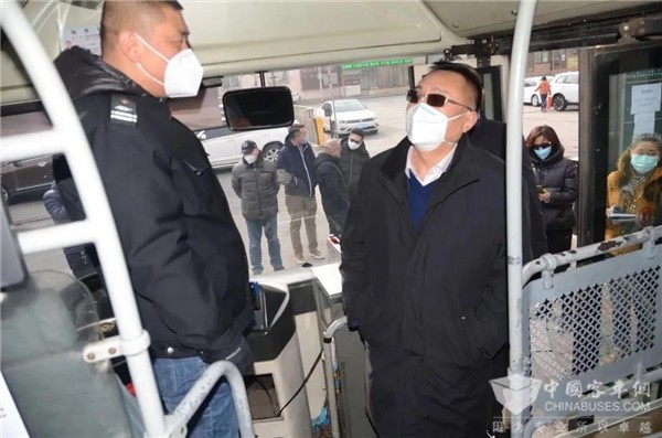 2020年2月29日傍晚,大连市市委常委、副市长骆东升在市交通局长王少成陪同下到公交集团看望慰问一直坚守防疫和客运的一线的干部职工,充分肯定了大连公交集团在疫情期间,坚守初心,保障运营的责任担当,高度赞扬了大连公交集团干部职工的战斗力和凝聚力。