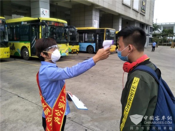 2020年3月4日,随着海口市复工复产企业持续增加,公交早晚高峰客流较上周明显增多。海口公交集团所有运营车辆“一趟一消毒”,实行扫码实名登记乘车,在重要站点和部分线路上开展乘客体温监测,通过加密发车班次、动态调整运力,于早晚高峰时段在部分站点安排志愿者现场值守,及时疏导客流,为广大市民的安全便捷出行提供保障。