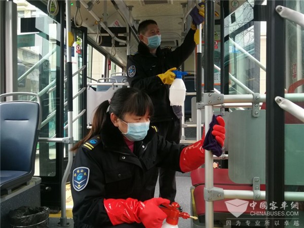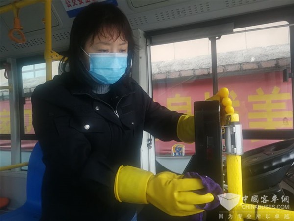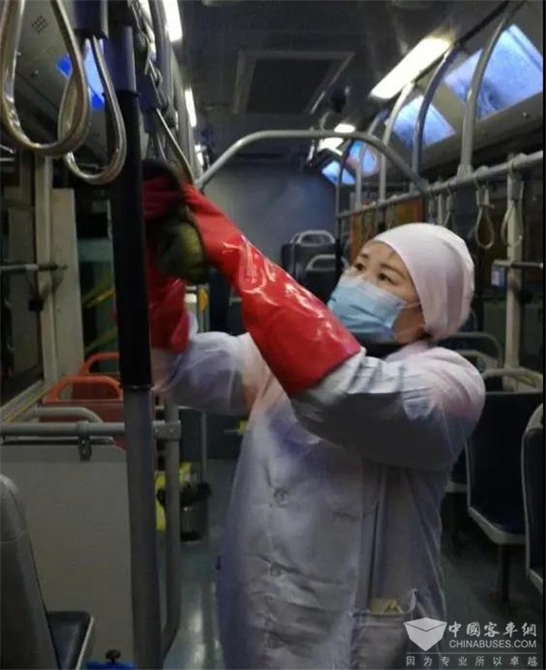 “十米车厢就是我们的‘战场’,做好车辆消毒工作,严格把好乘车关,保障乘客安全出行,是我们的职责,更是我们的神圣使命。”坚定的信念,总是让K89路驾驶员丁宁宁充满干劲。作为车队疫情防控突击队的一员,她每天在执行完营运任务后,她便迅速投入到车辆消毒工作中来,清理、喷洒、擦拭,不放过每一个死角。