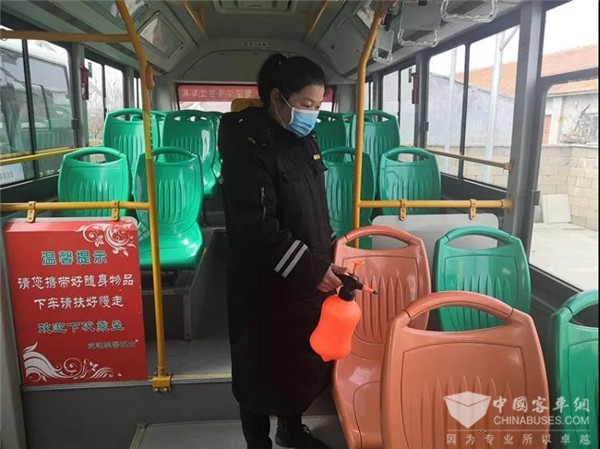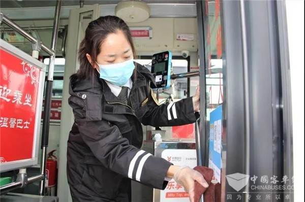 80后女质检员变身公交车“消毒卫士”