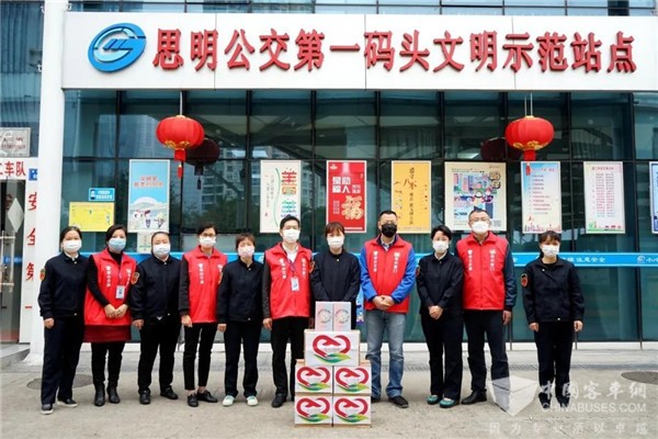 2020年3月9日上午,厦门市交通运输党工委副书记张松,市交通运输局组织人事处处长陈杉山、机关党委专职副书记郑昭苹一行到第一码头公交示范站点,慰问看望服务在抗疫一线的2路公交车女驾驶员代表,并赠送节日慰问品。厦门公交集团党委副书记吕金奖、党群部主任黄志红陪同慰问。