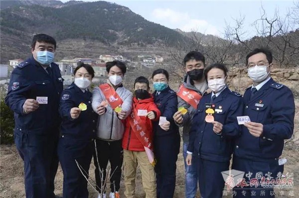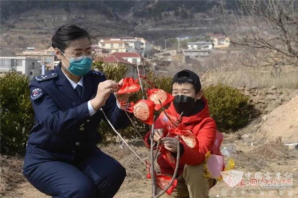 2020年3月10日下午,在“植树节”到来之际,4组“公交家庭”携手在青岛市崂山区北宅村的山坡上种下一棵棵樱桃树的幼苗,并手写心愿卡片系在树上,通过这种方式为武汉祈福,为中国加油。