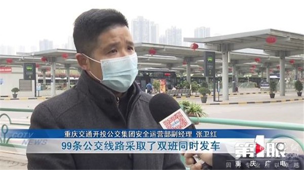 重庆交通开投集团安全运营部工作人员谭凯表示,目前,主城地面公交8000辆公交车、轨道交通250列运营列车已全部上线运行,他提醒广大市民,乘坐公交轨道,请正确佩戴口罩。