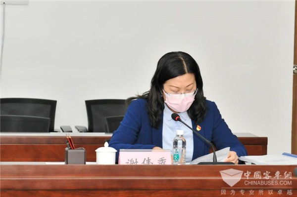 ▲集团党委副书记、董事、工会主席谢伟秀组织学习《中国共产党国有企业基层组织工作条例(试行)》