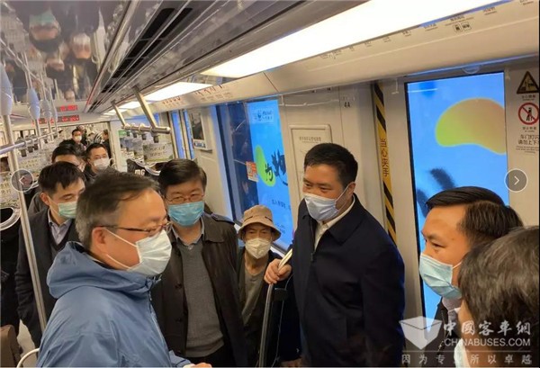 经过7站路约20分钟车程,陆永泉一行来到新街口东公交站,从新百商店8号入口进入地铁站,检查了车站、车辆防疫消毒工作,现场听取地铁运营情况、车辆消毒、乘客测温情况的汇报,并乘坐地铁1号线。