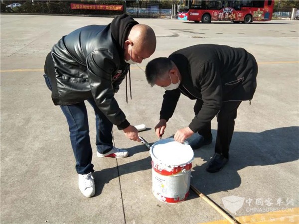 近期由于金城营运部场地内职工电动车棚改造,造成公交车辆移动空间不足,为保障企业内部道路交通的安全,营运部管理人员及时梳理场内秩序,划分临时停车位,规范各类车辆停放。