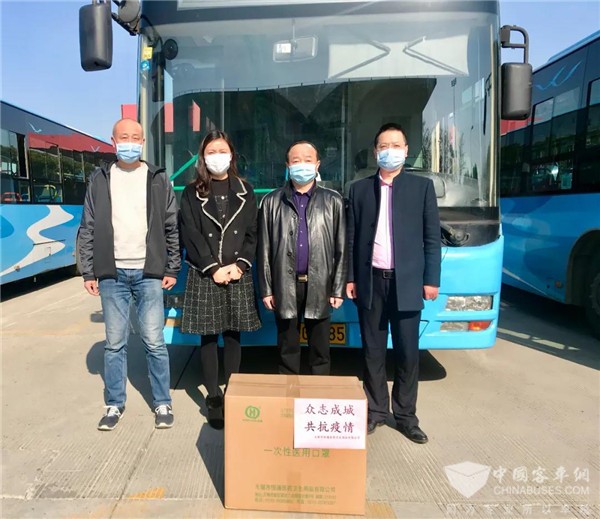3月17日上午,无锡市恒通医药卫生用品有限公司总经理黄焕斌专程将3000个医用口罩送至新区分公司,向奋战在疫情防控一线公交人表示慰问与鼓励。分公司经理王忠于、党总支副书记陶斐斐代表分公司接受了捐赠。