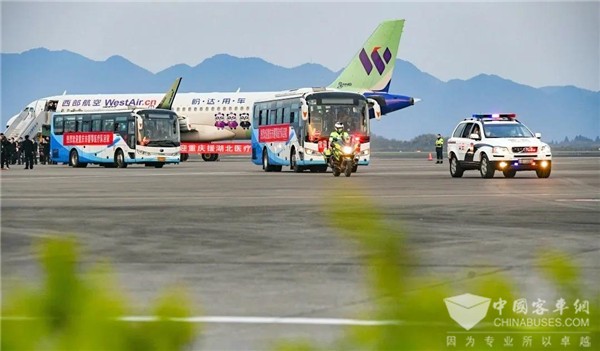 2020年3月18日,重庆阳光普照,春光明媚。随着疫情防控形势的持续向好,重庆第四批、第九批支援湖北医疗队完成使命,133名白衣天使告别武汉,启程回家。重庆公交集团两江公交机场快车光荣承担了迎接白衣战士平安回家的疏运工作。