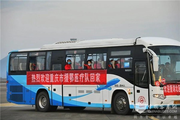 支援湖北的医疗队队员,他们将分批次启程返回重庆,重庆公交机场快车光荣承担持续迎接白衣战士平安回家的疏运工作,践行护送英雄出征前“迎接英雄们安全回家”的诺言。援鄂医疗队在最危难的时刻,不顾危险,挺身而出,肩负起了人民和祖国的期待。在援鄂白衣天使们的模范带动下,重庆公交人也将用行动践行责任与使命,在防疫保畅、复工复产中,为市民的便捷出行、安全乘车贡献公交人的力量。