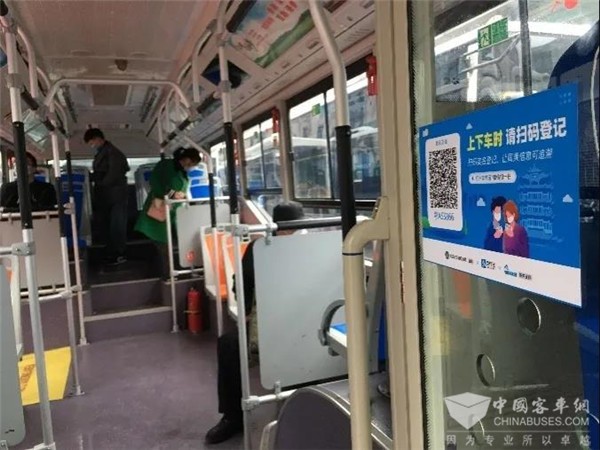 2020年4月2日上午9点多,记者在武汉市汉口火车站的公交枢纽站703路站台附近看到,这里设置了一个乘客咨询点。工作人员告诉乘客,在微信或者支付宝里生成湖北健康绿码后,上车前,还必须测量体温,扫描车身上的二维码,后台录入乘车人信息后,才能乘车。下车时,乘客必须再次扫描车厢内的二维码,实现人员流动轨迹的全程掌握。