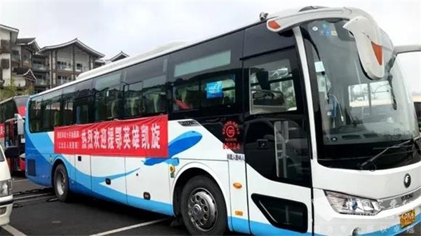 2020年4月6日上午,重庆市红十字会医院(江北区人民医院)第一批支援湖北的32名医护人员结束了14天的康养。重庆公交集团两江公交机场快车践行2月23日送医护人员出征时的承诺,提前准备2台大巴车、3名工作人员,到抗疫英雄们康养的酒店,接英雄回家,与家人团聚。