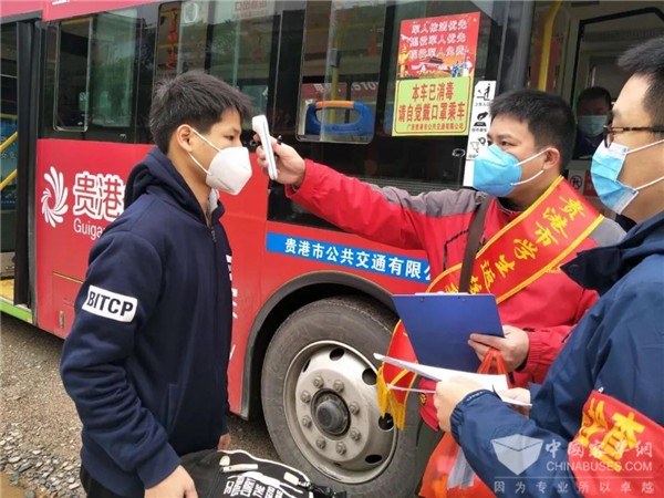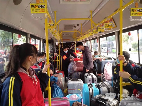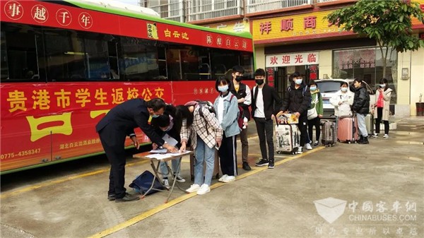 春意盎然,复课伊始。2020年4月7日,贵港市高三、初三学生开学复课。为认真贯彻落实市委、市政府有关疫情防控和学生开学健康安全防护工作的部署要求,避免返校学生与外界密集人群接触、减少感染风险,确保我市2020年春季学期高三、初三学生顺利返校复学,贵港市交投集团公交公司按照“决不能让学生因疫情延误学业” 的工作目标,切实履行国企社会责任担当,未雨绸缪,多措并举,提前积极主动与各学校对接,密切关注各学校复学安排,全面摸排各校复学情况。结合学生出行需求,制定返校公交专线疏运方案,落实落细每辆车在接送之前进行严格安检、全面消毒,配备体温测量器和医用口罩,制定统一乘车标识,加强驾驶员安全意识与责任意识教育等措施,对乘车学生逐一测量体温并做好实名登记,切实把好复学疏运与防疫安全第一关,有力保障广大学生返校复学出行安全。