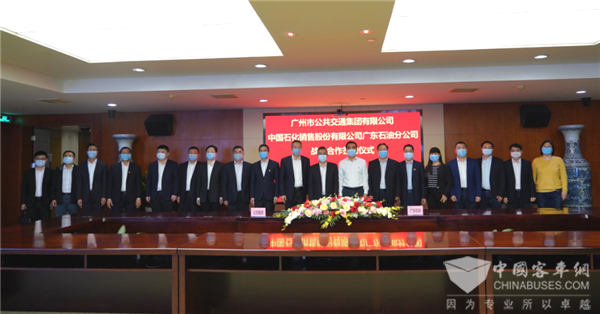 签约仪式上,广州公交集团副总经理李超恒和中石化广东石油分公司副总经理邹伟海代表双方签订《战略合作框架协议书》,广州公交集团二运公司副总经理、能源公司董事长苏杰荣和中石化广东广州石油分公司总经理黎锋代表双方签订《合作意向书》。