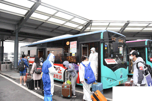 入境旅客经口岸检验检疫后,由口岸防疫现场指挥部的工作人员进行信息采集和防疫流程登记,再由工作人员带到车辆转运车位与巴士集团工作人员交接,上车前往目的地,工作人员随车前往,途中全程不停站上下客。到达目的地后,工作人员带领入境旅客前往隔离住所,转运车辆返回口岸进行消杀和继续执行任务。