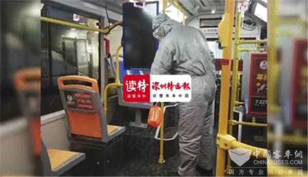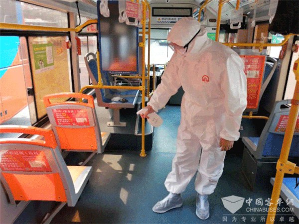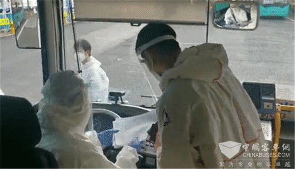 为了让入境旅客安心乘坐,巴士集团制定了周密的消毒工作流程,安排了专业的消杀消毒公司,每次转运任务完成之后立即消毒,工作人员身穿全身防护装备,驾驶室与车厢之间进行物理隔离,避免交叉感染,消毒防护工作周密细致。