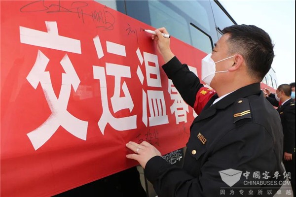 温馨巴士774线路自新韵路发往罗家营,于2014年12月正式开通运营,共设39个站点,日均输送乘客两千余人次,是村民赶集、就医看病、上学、工作出行的主要交通工具。4月12日,交运温馨巴士高新区分公司针对“擦亮窗口,释放温度”优质服务大提升活动,率先将774路打造为流动的“亲情驿站”示范线,驾驶员纷纷签字承诺,把乘客当亲人,细心揣摩乘客需求,开辟公交服务新维度。