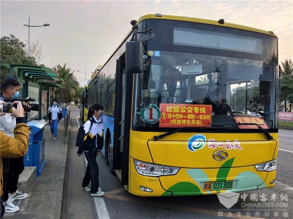 4月13日起,海口初、高中全面开学。为有效应对疫情,最大限度减少海口师生在上学放学、上下班途中交叉感染新冠肺炎的可能性,确保师生生命安全,缓解交通拥堵,海口公交集团4月13日开通首批4条“校园公交专线”,覆盖白驹学校、市十四中、海港学校等3所学校,师生可享受点对点免费公交出行服务。这是继4月9日海口开通首批“校园公交专车”114条线路、205辆车之后,再次针对各学校实际量身定制“校园公交专线”,其余学校根据对接情况陆续开通。