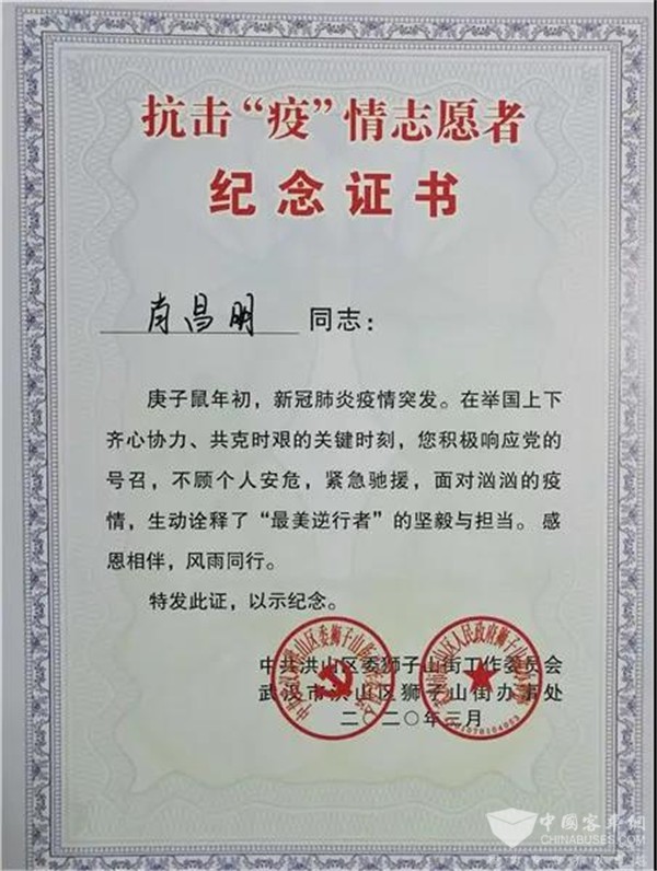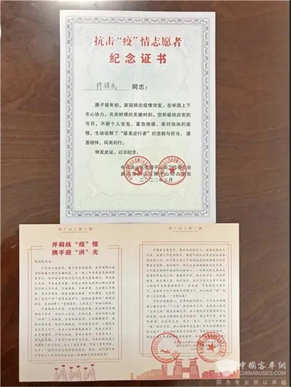 “在举国上下齐心协力、共克时艰的关键时刻,你们积极响应党的号召,不顾个人安危,紧急驰援,面对汹汹的疫情,生动诠释了‘最美逆行者’的坚毅与担当。”2020年4月13日,武汉公交光谷公司下沉志愿者段诚、杨三清、陈祺民收到来自洪山区狮子山街珞珈雅苑社区发来的感谢信,感谢该公司3名下沉志愿者,在抗击疫情的关键时期做最美的“逆行者”,支援社区坚决打赢这场疫情防控攻坚战!当天,公司下沉党员葛仁昌、肖昌明,同样收到了各自社区送来的感谢信。