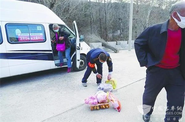 乘车的大都是老年人,上下车有些吃力,每次翁晓明都是搀上搀下,随时提醒“弯腰!小心碰头”。