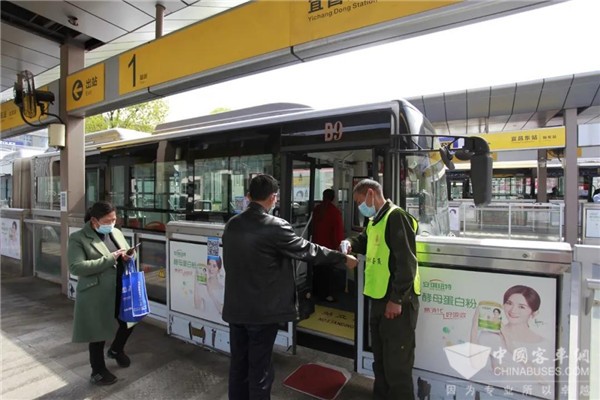 在每辆运营公交车上,宜昌公交集团都配备了导乘服务人员,在BRT站台内有专人查验绿码或健康证明材料、引导扫码乘车、维持乘车秩序等。还建立了60多个乘客微信群,将近1.5万名乘客入群,协助监督疫情防控相关工作,互动交流,促进提升服务质量和服务水平。