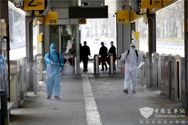 为给乘客提供安全、健康的公共交通出行服务,宜昌公交集团严格执行疫情防控措施,对所属655台公交车、56个BRT站台进行全面安全检查和彻底的防疫消毒。