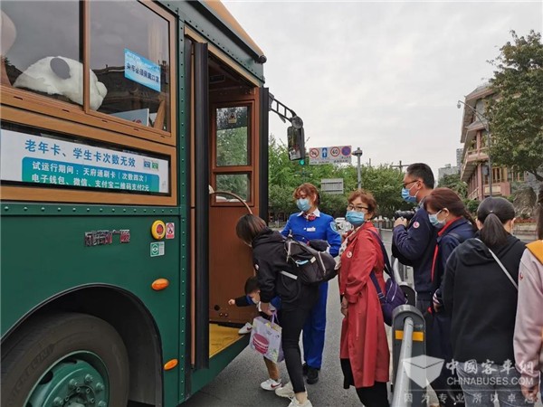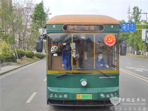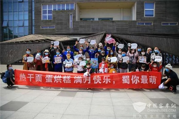 2020年4月18日,成都公交集团对成都锦城观光线上两辆复古公交车首次进行熊猫主题打造,制定专属路线,满载着十四个家庭一起去成都大熊猫繁育研究基地为刚满月双胞胎熊猫宝宝“热干面”“蛋烘糕”送去祝福。