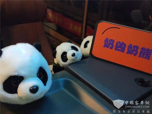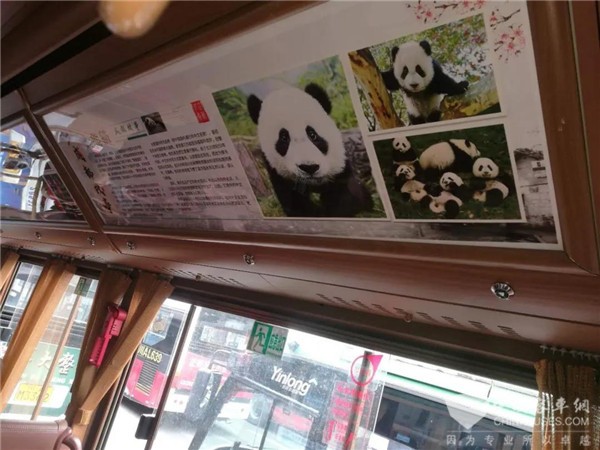 结合本次活动的熊猫主题,成都公交集团对这两辆公交车进行升级打造,在公交车内部融入多种熊猫主题元素。除了在皮质座椅上放置精美的熊猫文创产品外,车内还专门开辟熊猫科普区域,向乘客详尽介绍“热干面”与“蛋烘糕”的具体情况。