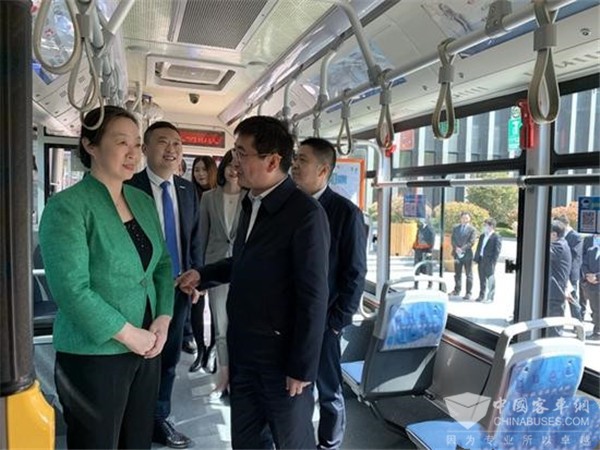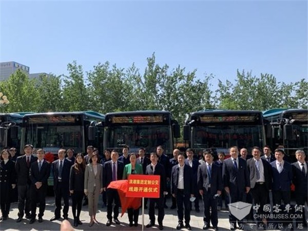 启动仪式上,浪潮集团执行总裁冷严凌、济南公交集团总经理周建国共同为定制公交线路开通仪式揭牌,随后,参加仪式的领导、来宾在定制公交前合影留念,并进入公交车内参观交流。