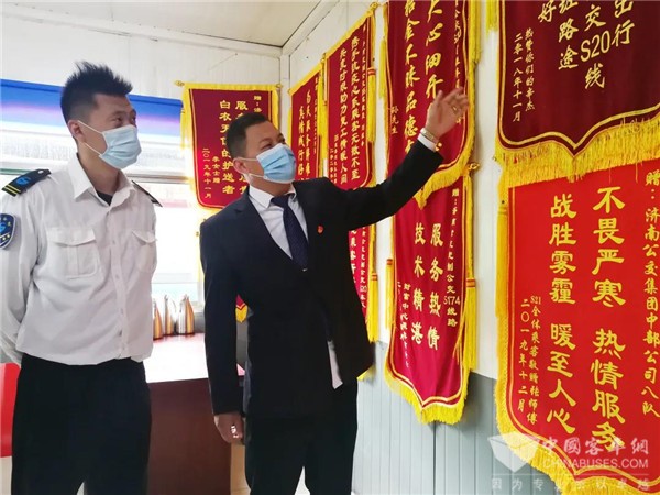 济南公交中部公司八队队长曾海涛让车队驾驶员加入所有定制公交线路微信群,激励大家相互比学赶超。八队有一个“定制公交工作室”,墙上挂满乘客送的锦旗,记者一数,已有28面。“这面锦旗是S416路接到的。那天下大雪,公交车提前半小时到达,开着暖风等待乘客”“这面锦旗是乘客连续丢了两次东西,第一次他联系我,最后找到了,第二次是我发现后给他送回去了”“68路公交车最早开进这个村……”定制公交驾驶员陈峰等向记者讲述了一面面锦旗背后的故事。