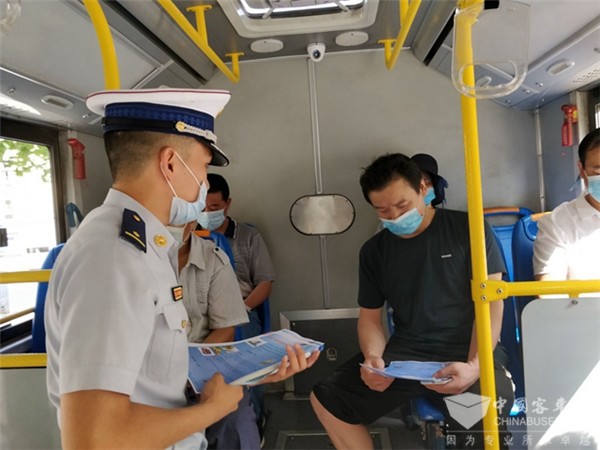 2020年6月5日,云阳县消防救援大队组织宣传人员走上公交车开展消防宣传,利用公交车客流量大、传播速度快等优势,面对面地为广大乘客讲解消防安全知识。