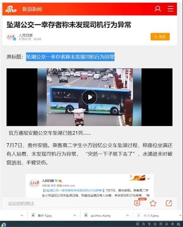 2020年7月12日下午,安顺市公安局发布《警方通报》,查明驾驶员以危险方法危害安全的行为涉嫌严重刑事犯罪。