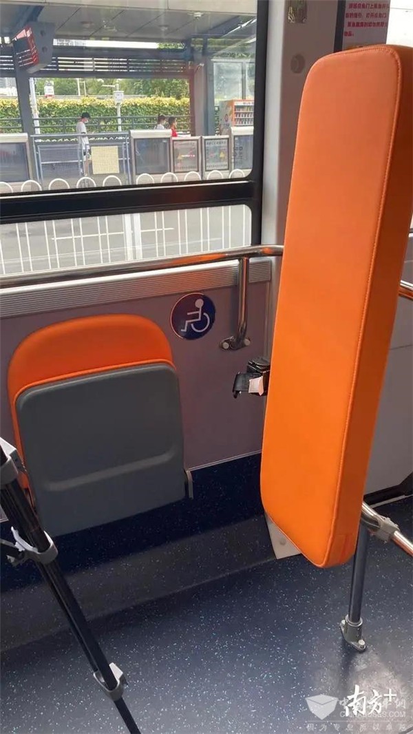 在上下车方面,车门变得更宽了,门开净宽度达到1.2米。车门还配置翻转踏板,当遇到乘坐轮椅的乘客时,司机便会手动翻转踏板,让轮椅乘客顺利上下车。此外,车辆地板高度统一使用低地板,与站台更好衔接,上车处取消台阶,乘客从站台到车厢、从车厢到站台的过渡感更加平顺。