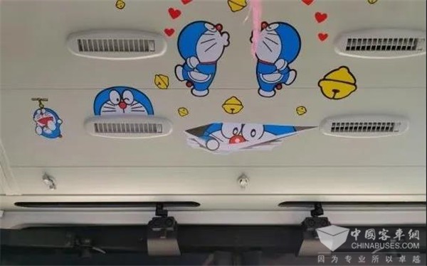 提到选择哆啦A梦来装饰车厢的原因,柴师傅表示:“我小时候就一直很喜欢哆啦A梦,圆圆的脸,蓝蓝的皮肤,感觉特别可爱,这次要装饰车厢,我一下子就想到了它。”