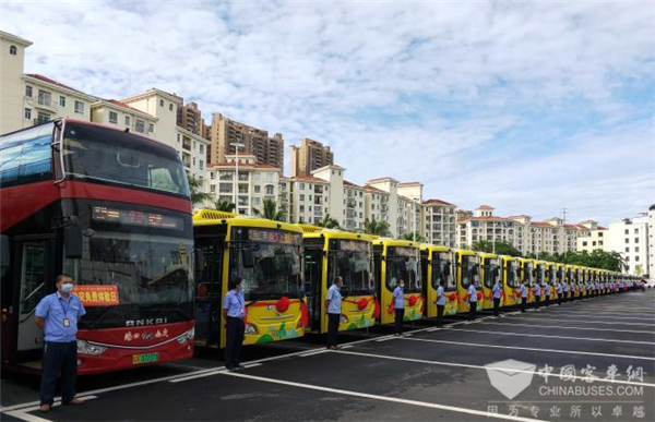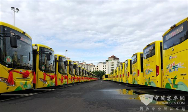当日,海口市新投放290辆纯电动公交车至20条公交线路运营。