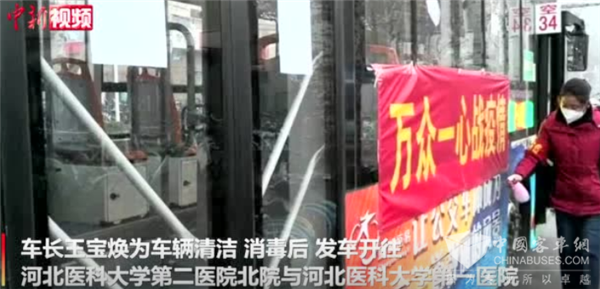 2021年1月27日,河北省石家庄市公交二公司8路车队车长王宝焕为车辆清洁、消毒后,发车开往河北医科大学第二医院北院与河北医科大学第一医院,沿途接送乘车的医护人员。