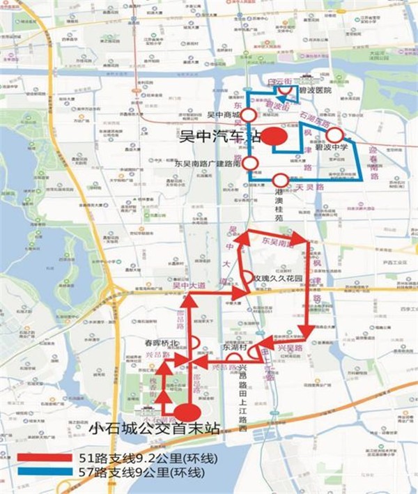 线路走向:小石城公交首末站、小石湖路、槐香街、兴昂路、邵昂路、吴中大道、东吴南路、枫津路、兴吴路、田上江路、兴昂路、邵昂路、小石城公交首末站,9.2公里(环线)。