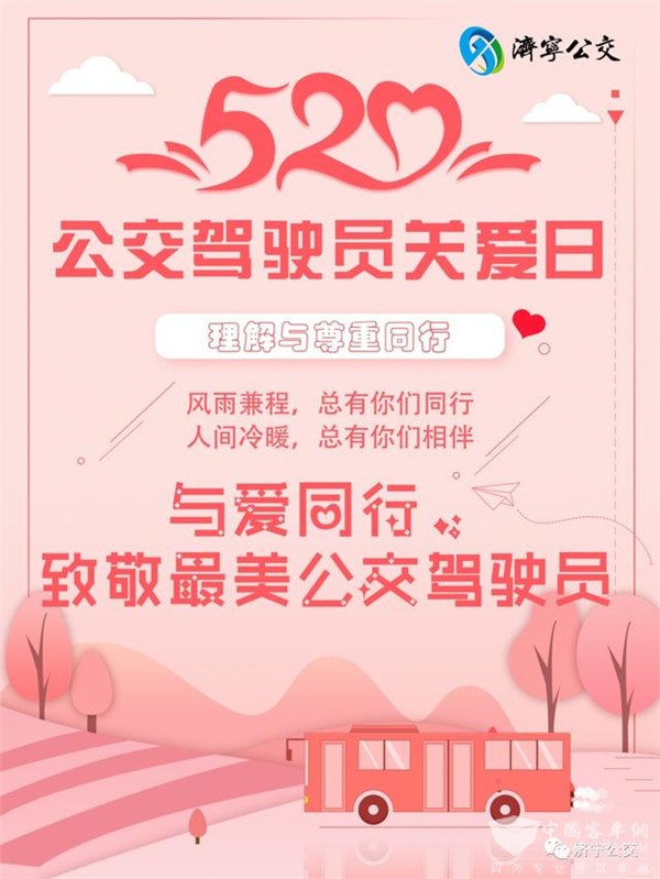 “公交优先、百姓优先”。公交驾驶员日复一日年复一年承担着社会繁重的公益任务,既真诚希望社会各界和广大市民支持公交事业发展、关心关爱公交驾驶员群体,共同营造理解尊重公交驾驶员的和谐氛围,也十分欢迎广大市民朋友为济宁公交事业的发展建言献策,我们将把社会各界及广大市民的关爱化为文明行车、优质服务的动力,共建安全、便捷、优质、文明、和谐的公交出行环境。让我们携起手来,互敬互爱一家人,共建和谐城市交通,共创文明之城,共筑美好家园!