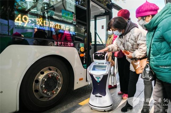 “欢迎乘坐49路公交车,查路线可以摸摸我的头。”上海市公交49路人民广场站台的智能导乘机器人吸引了不少乘客的注意。陪奶奶前往医院就诊的郑女士问道:“去中山医院怎么坐车?”机器人回答:“您可以乘坐49路公交车到中山医院站下车,本站可转乘公交171路。”同时,机器人胸前的液晶屏上也给出了相应信息。