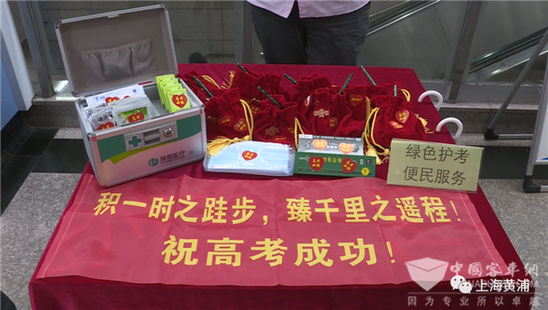在上海地铁8号线四平路站,距离考点最近的1号口设立了一个“高考服务台”,为考生准备“高考福袋”,大红色的福袋上印着金榜题名字样,里面有口罩等防疫物品,还有2B铅笔、橡皮等“爱心文具”。