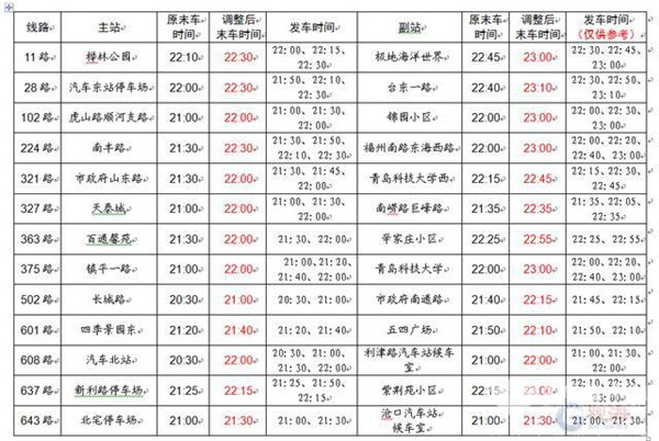 为提高常规公交线路与地铁线路的衔接换乘效率,方便市民出行,自6月30日起调整227路线的首末车时间。具体方案如下↓↓↓社会福利院5:20—21:20(首车提前20分钟、末车延后20分钟),四方杭州路6:00—22:00(首车提前20分钟、末车延后20分钟)。为提高常规线路间的衔接换乘效率,方便市民出行,自7月1日起调整466线路末车时间。具体方案如下↓↓↓秦家土寨 夏季6:00-18:15(首车不变,末车延长15分钟)